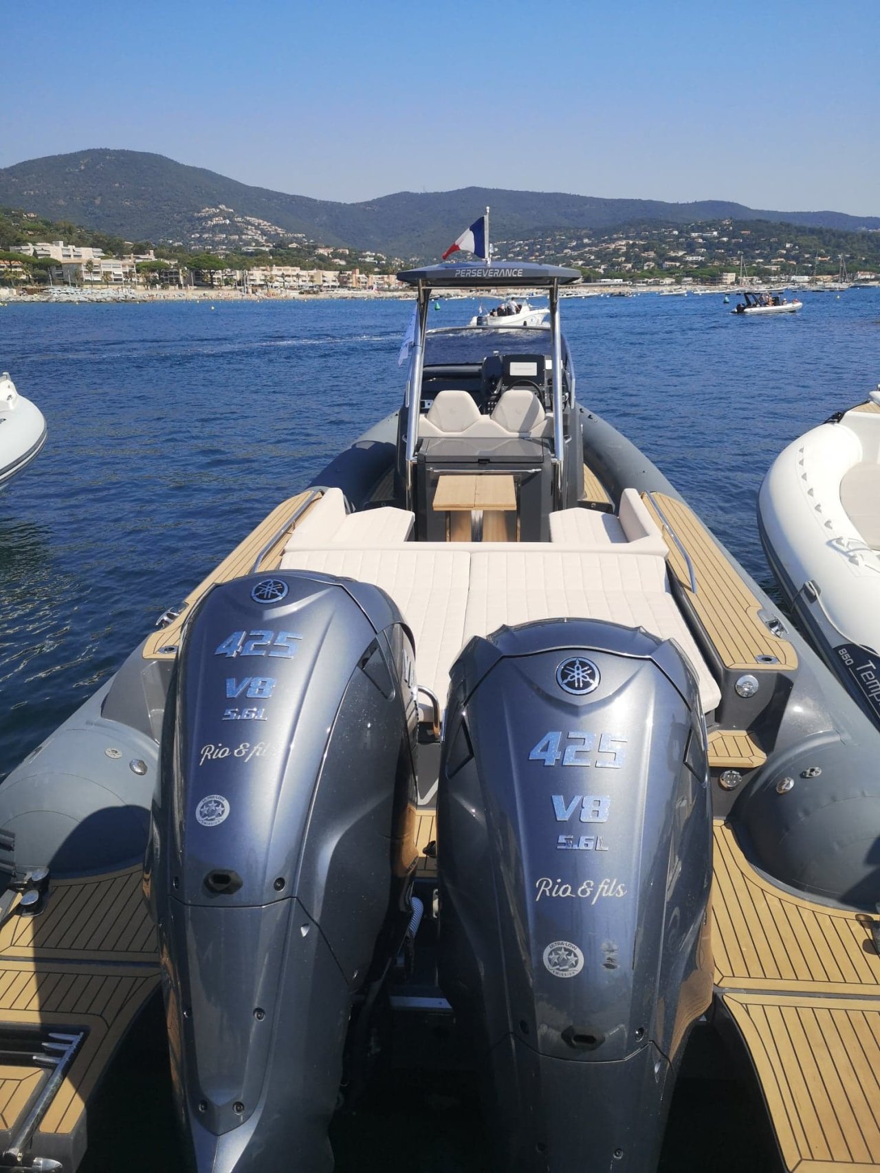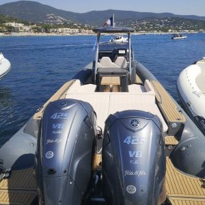 Venez profiter de notre tout nouveau TEMPEST 40 (2022) dont le poste de pilotage est confortable par l’ergonomie de conduite qu’il offre, que ce soit en position debout ou-assise avec l’apport d’un cale-pied en teck. T-top sur le post de pilotage avec barre télescopique pour offrir un grand taud de soleil à l’arrière. Les déplacements à bord, sont aisés, grâce notamment aux espaces libres autour du poste de pilotage et aux larges passavants sécurisés par la main courante de pare-brise pour rejoindre à l’avant l’immense solarium et le carré arrière avec sa banquette en U qui peut accueillir environ huit convives autour d’un pique-nique.