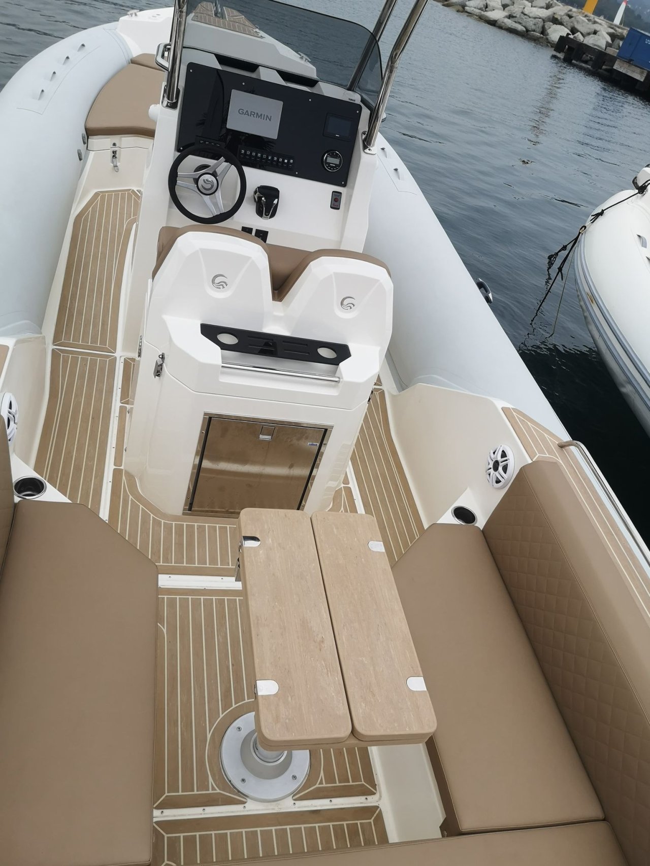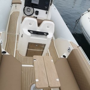 Ce bateau offre un carré arrière en U permettant un déjeuner à bord conviviale et confortable avec en plus un grand bain de soleil à l’avant.
