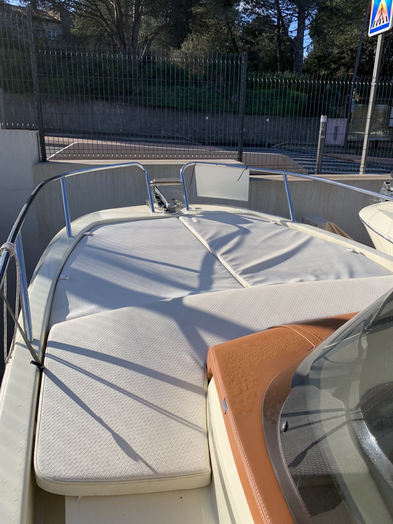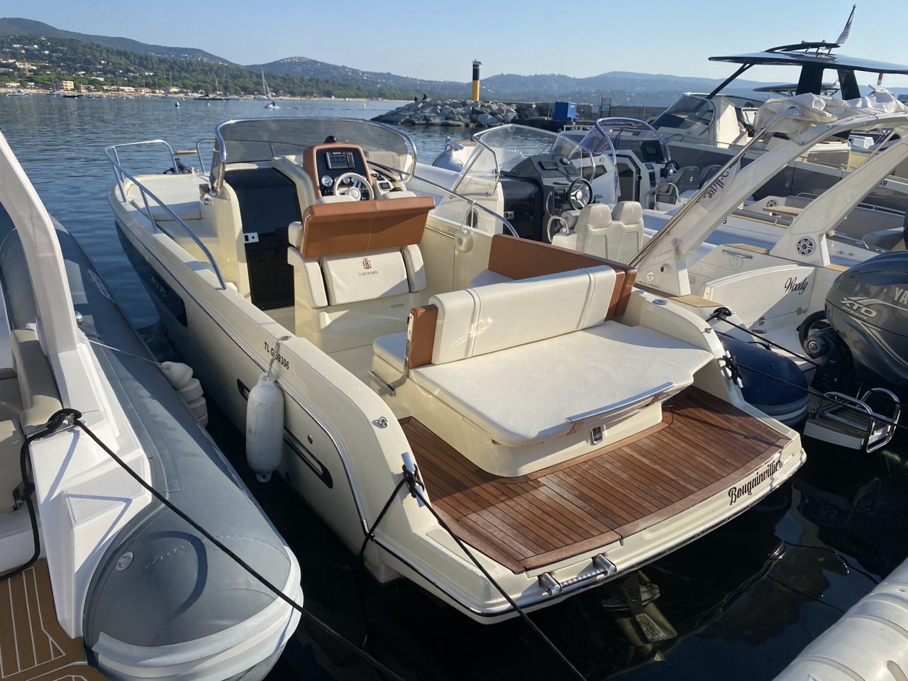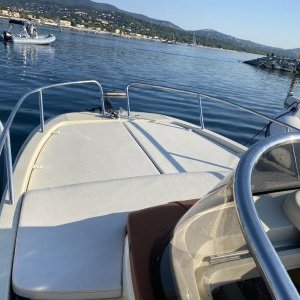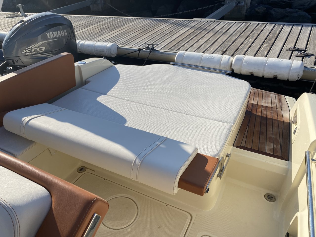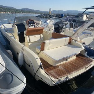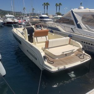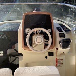 Intérieur spacieux et fonctionnel, le volant est réglé à la verticale, pour une navigation précise et confortable. Le moteur in-bord augmente l’espace disponible à bord, ainsi que l’élégance de ses lignes. L’Invictus capoforte CX 250 est un concentré de design et de confort, qui se distingue par le soin apporté à chaque détail. La plate-forme de baignade est une passerelle pratique et l’accès privilégié à la mer, également un élément qui donne des formes élégantes, tandis que son moteur à l’intérieur qui minimise l’impact visuel. Parfait pour ceux qui aiment profiter de la mer dans un confort total, sans sacrifier la fonctionnalité, la performance ou l’efficacité. Le bateau est équipé d’un grand bain de soleil fixe a l’avant, d’un taud de soleil caché sous le bain de soleil qui va couvrir toute la partie déjeuné, d’une table de cockpit, d’un double siège pilote donc le dossier est réversible pour avoir un grand espace déjeuné de cockpit avec une belle table en teck, une douche de pont, une cabine 2 couchages avec WC et un frigo, d’un grand bain de soleil arrière, et d’un propulseur d’étrave.