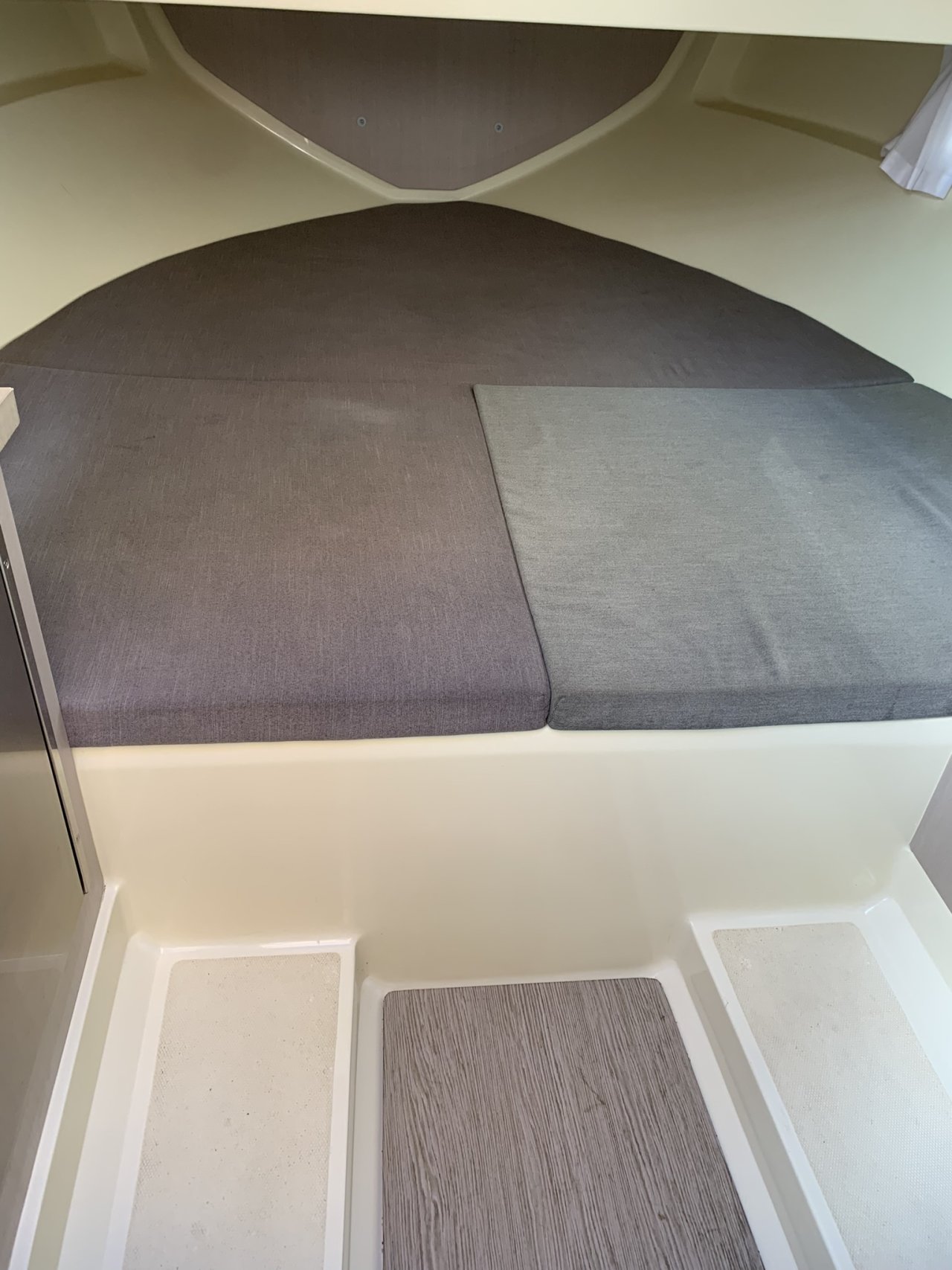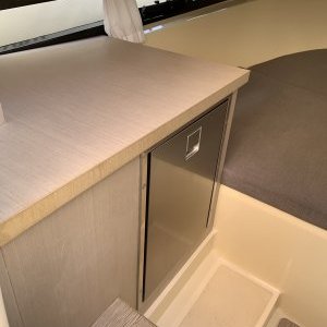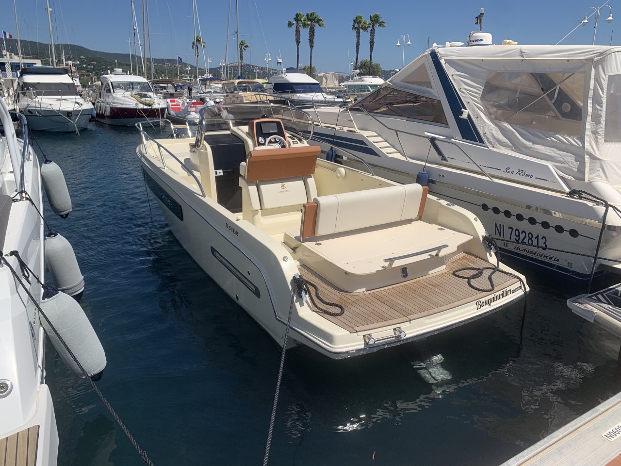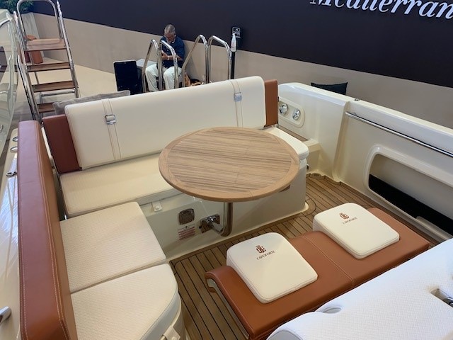 Intérieur spacieux et fonctionnel, le volant est réglé à la verticale, pour une navigation précise et confortable. Le moteur in-bord augmente l’espace disponible à bord, ainsi que l’élégance de ses lignes. L’Invictus capoforte CX 250 est un concentré de design et de confort, qui se distingue par le soin apporté à chaque détail. La plate-forme de baignade est une passerelle pratique et l’accès privilégié à la mer, également un élément qui donne des formes élégantes, tandis que son moteur à l’intérieur qui minimise l’impact visuel. Parfait pour ceux qui aiment profiter de la mer dans un confort total, sans sacrifier la fonctionnalité, la performance ou l’efficacité. Le bateau est équipé d’un grand bain de soleil fixe a l’avant, d’un taud de soleil caché sous le bain de soleil qui va couvrir toute la partie déjeuné, d’une table de cockpit, d’un double siège pilote donc le dossier est réversible pour avoir un grand espace déjeuné de cockpit avec une belle table en teck, une douche de pont, une cabine 2 couchages avec WC et un frigo, d’un grand bain de soleil arrière, et d’un propulseur d’étrave.