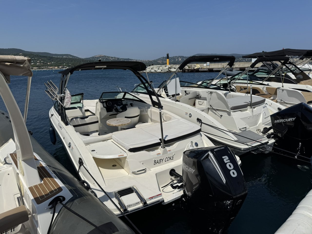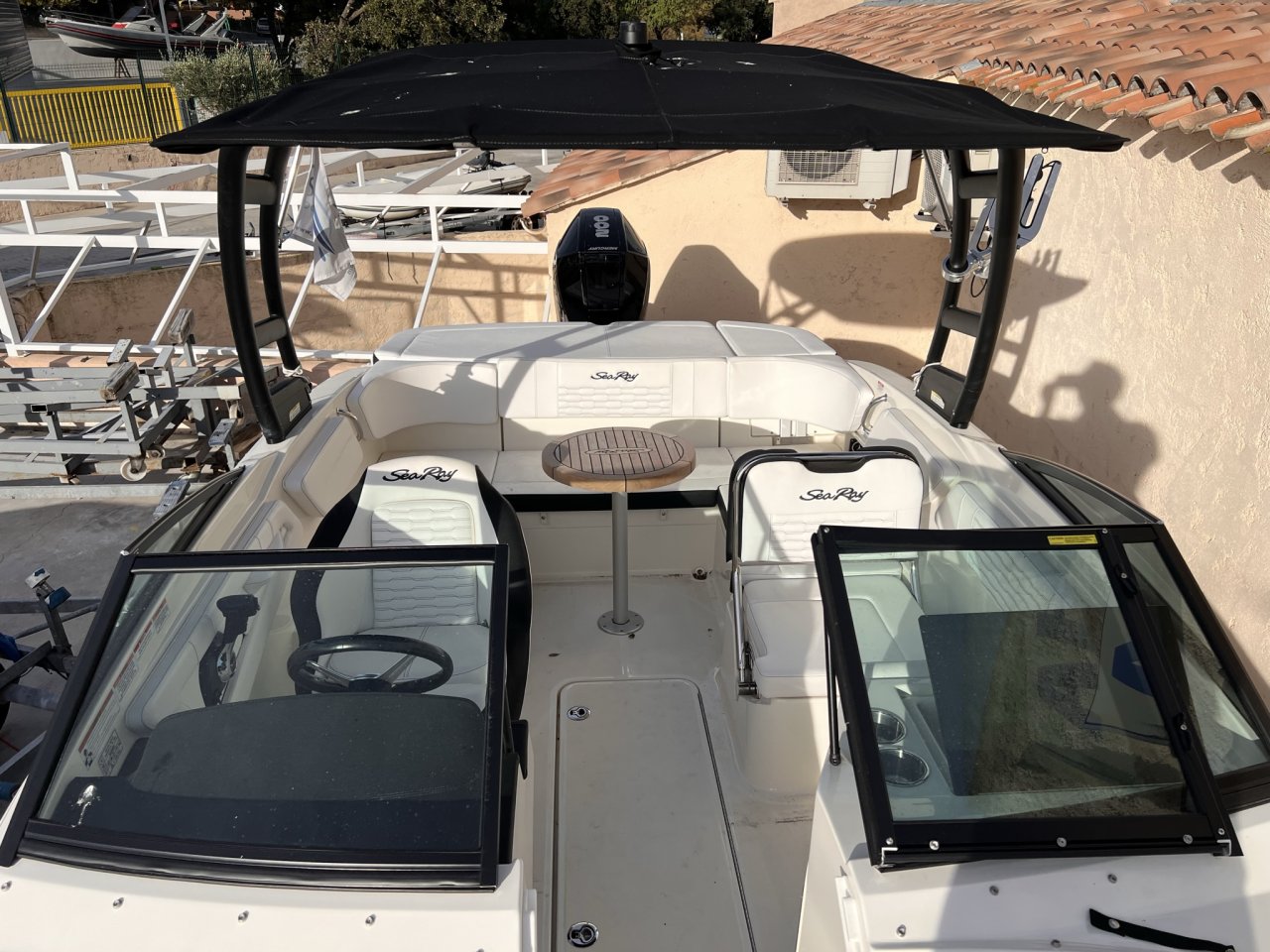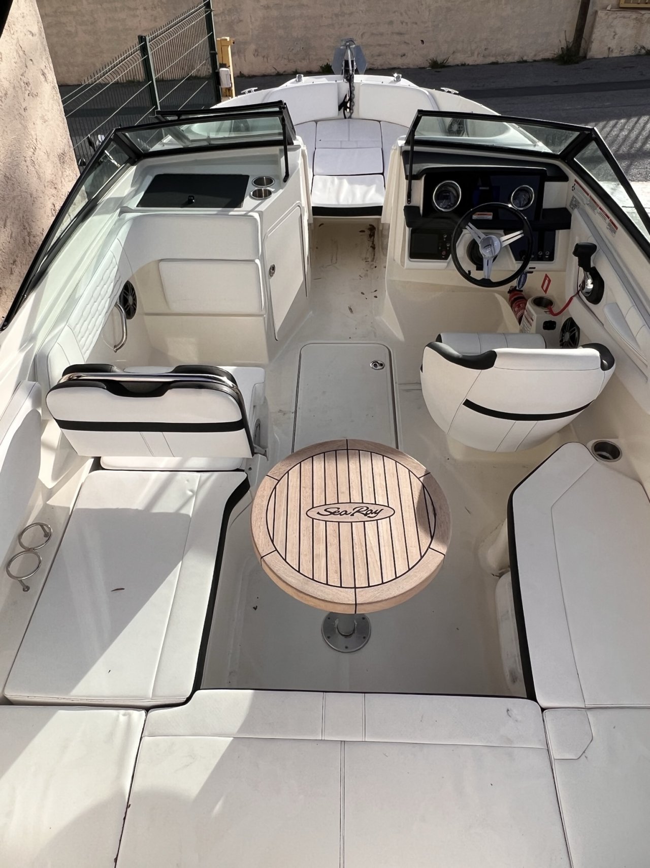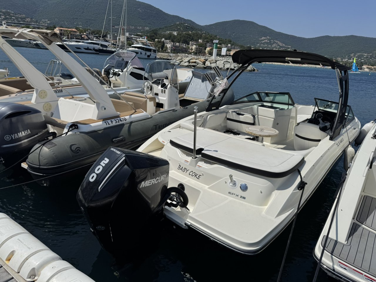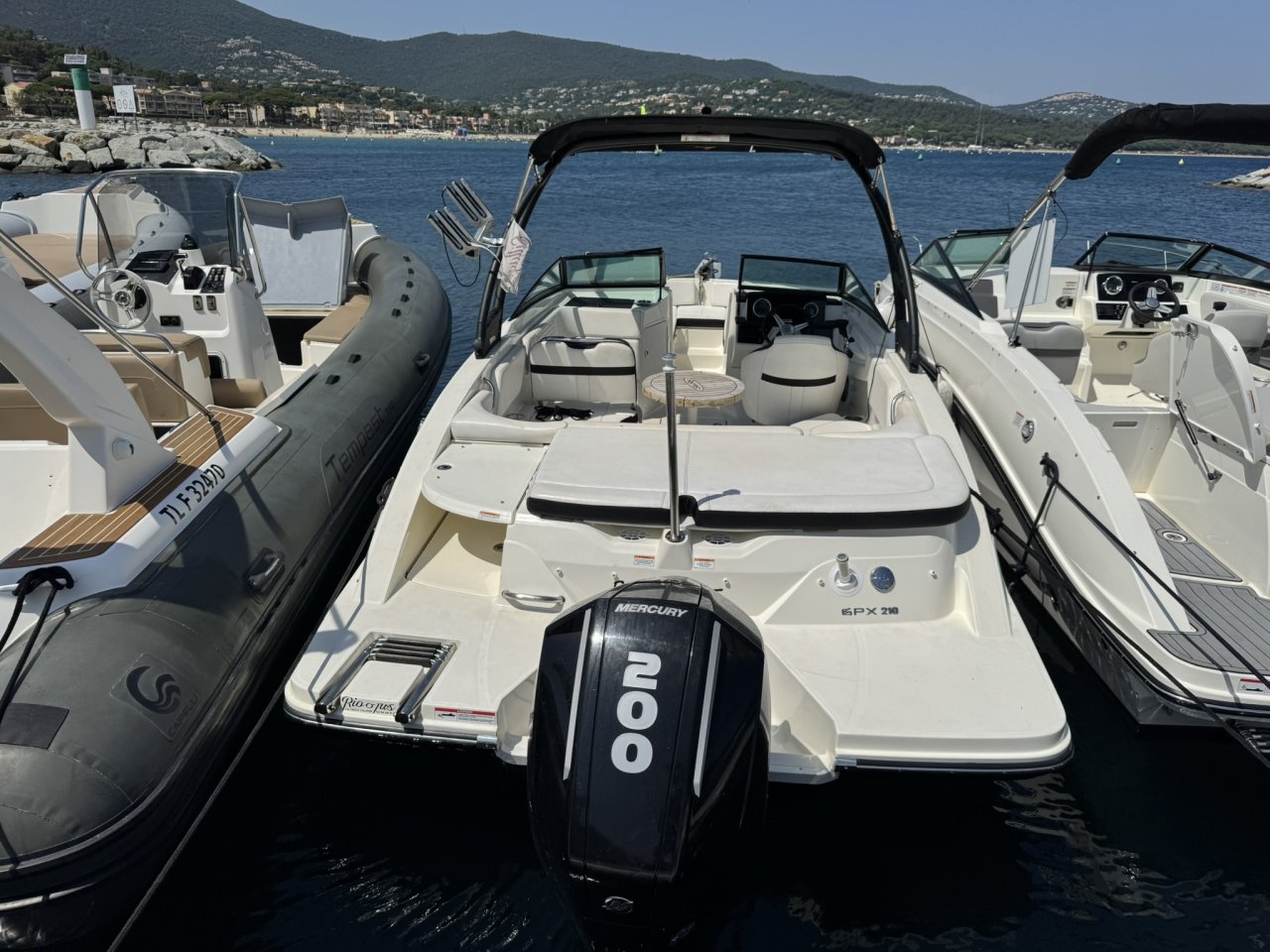 Le Sea Ray SPX 210 est l’incarnation d’un bateau sportif avec un support de wake sur la tour, les nombreuses places assises vous offrent une belle convivialité autour d’une table. Ce bateau est équipé. d’un moteur Mercruiser 200cv. Que vous privilégiez la pêche, les sports nautiques ou la croisière toute la journée dans le confort, le 210 SPX est parfaitement adapté.