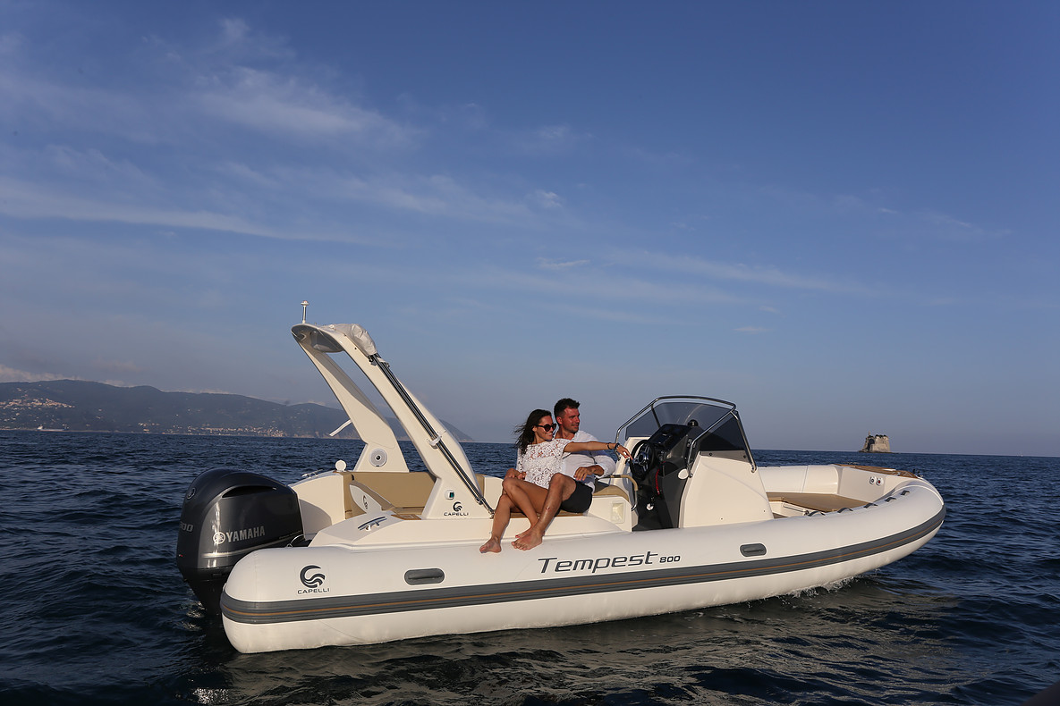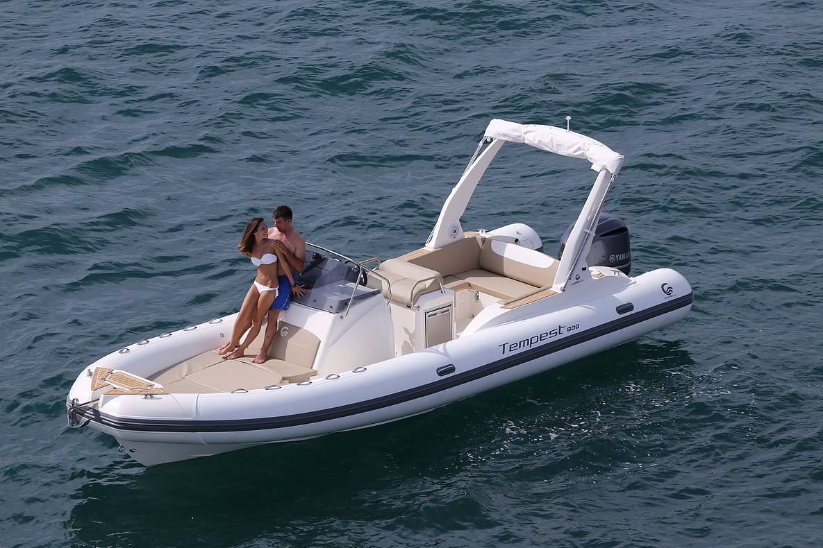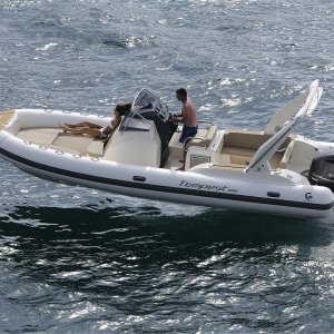Le Tempest 800 est le fruit de la réflexion engagée avec notre réseau et le chantier Capelli. Nouvelle carène accueillant le V6 4.2 300CV, elle conserve cependant une largeur de 3m. Il dispose de deux carrés : un à l’arrière transformable en bain de soleil et l’autre à l’avant. L’accès à la cabine se fait par un puits central de 1.78m de hauteur sous barrot ce qui permet d’y stocker tous le matériel et les affaires personnelles. L’équipement est complété par un confortable leaning post double intégrant les mains courantes ainsi qu’un point d’eau. Enfin pièce conséquente, la nouvelle delphiniére intégrée au flotteur procure un accès très facile à bord ou à quai. Performant avec le 300CV, la carène auto portante déjauge instantanément et reste très stable. La vitesse maxi atteint 48 Nœuds.