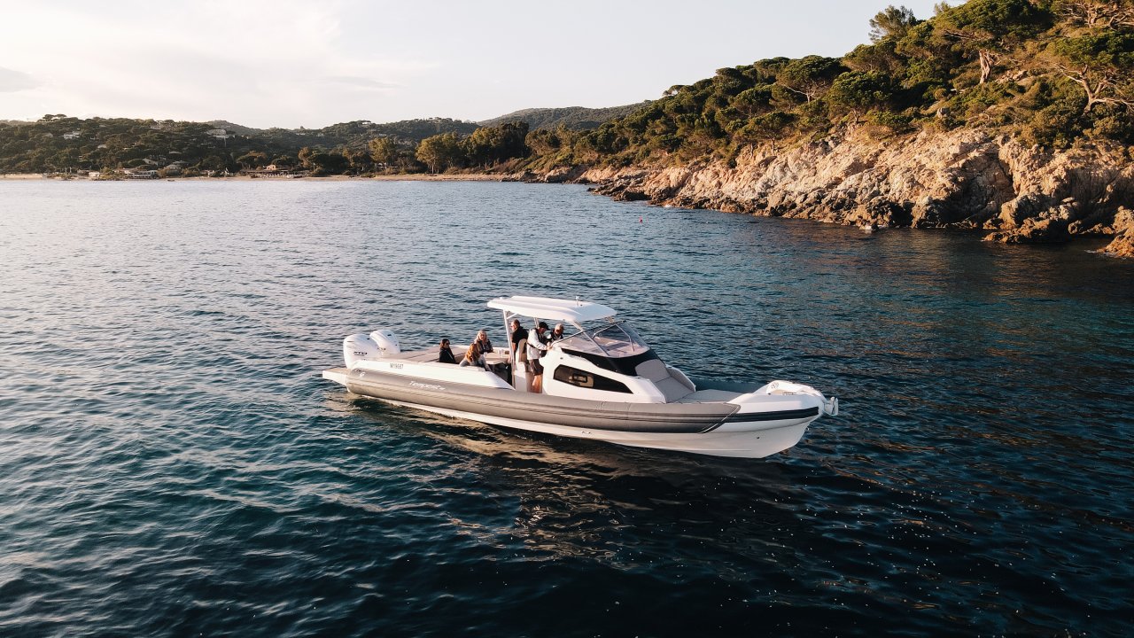 Il possède un t top afin que le pilote soit toujours à l’ombre, de plus en positionnant 2 pilonnes en carbone de chaque coté du bain de soleil vous pourrez déjeuner à l’ombre.