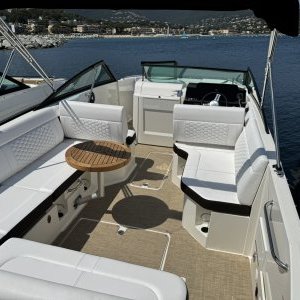 Avec son cockpit spacieux, sa cabine incluant un WC et un petit couchage pour enfants, ses différents sièges convertibles, le bain de soleil arrière, et son système audio bluetooth avec les hauts parleurs de cockpit, le SDX 250 OB est le bateau idéal afin de profiter pleinement d’une journée entre amis ou en famille tout en pratiquant les sports nautiques.